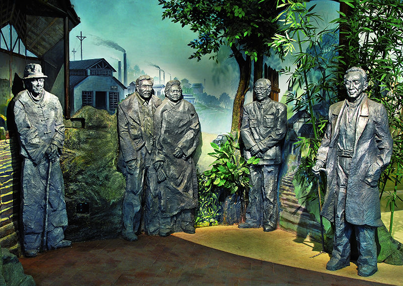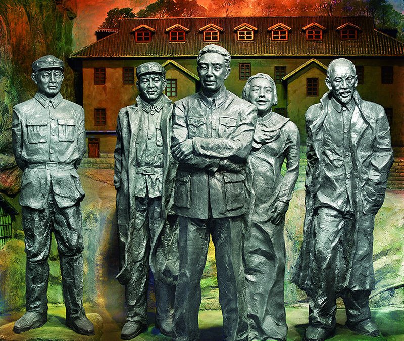 名人馆雕塑陈列厅 网站首页 / 点点手机官网首页 / 名人馆雕塑陈列厅 第三部分 第三部分抗日战争时期历史人物61人1从左到右:王若飞、叶剑英、周恩来、邓颖超、董必武2从左到右:林森、宋庆龄、宋美龄3从左到右:饶国模、陈独秀、叶挺、卢作孚4从左到右:吴蕴初、苏汰馀、冼冠生、李承干、翁文灏5从左到右:马寅初、顾毓琇、晏阳初、梁漱溟、陶行知、张伯苓6从左到右:曹禺、梁实秋、吴祖光、胡风、郭沫若、老舍、何其芳、邹韬奋、张恨水、茅盾7从左到右:陈纳德、史迪威、李约瑟、文幼章 上一条第二部分 下一条第四部分