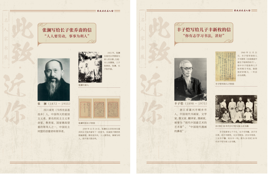 一纸信笺,一声此致,书尽至此,情却近你。党的二十大报告指出:推动家庭家教家风建设。家书是家庭的情感纽带,是家教的重要载体,也是家风的一面镜子。本展览遴选出19位历史名人具有代表性的家书进行展示。这些尘封的家书,是我们学习名人品格风范,特别是进行家庭建设的生动教材,有利于中华民族优秀传统文化的发展与传承,把实现家庭梦融入到民族梦之中,心往一处想,劲往一处使,汇聚起实现第二个百年奋斗目标、实现中华民族伟大复兴中国梦的磅礴力量。