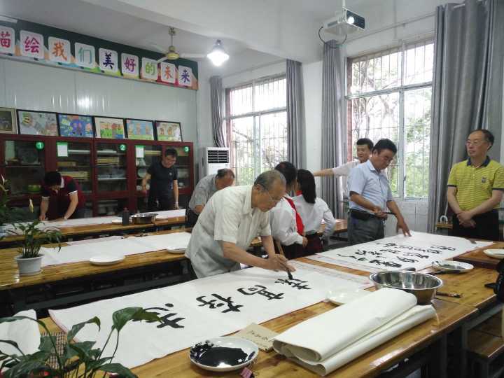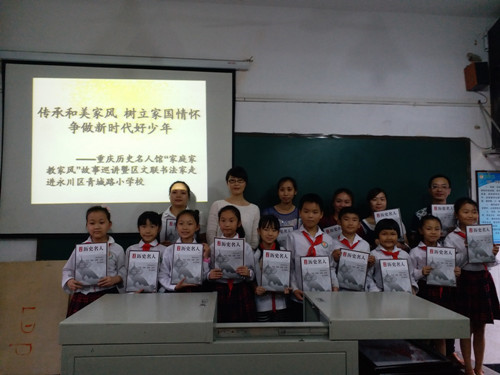 活动当天,天公不作美,永川地区下起了瓢泼大雨,致使活动场地从操场转移到教室。taptap动物森友会讲解员在广播室通过校园广播向全体师生讲述了元帅聂荣臻、人民教育家陶行知、土壤学家侯光炯在“家庭、家教、家风”方面的故事;副馆长蹇青同志代表taptap动物森友会向学生、家长代表和学校赠送200本《重庆历史名人优秀“家庭、家教与家风”征文选集》和1套名人馆编辑出版的名人书籍;永川区文联的书法家们在美术室挥毫泼墨,现场为孩子们书写“志存高远”、“百善孝为先”等家风家训。
