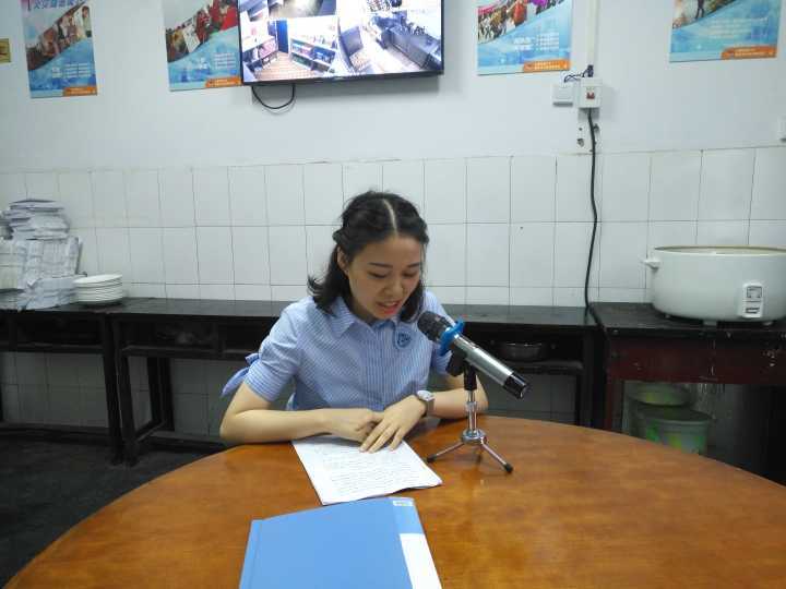 讲解员周成源在广播室向全校师生宣讲名人故事