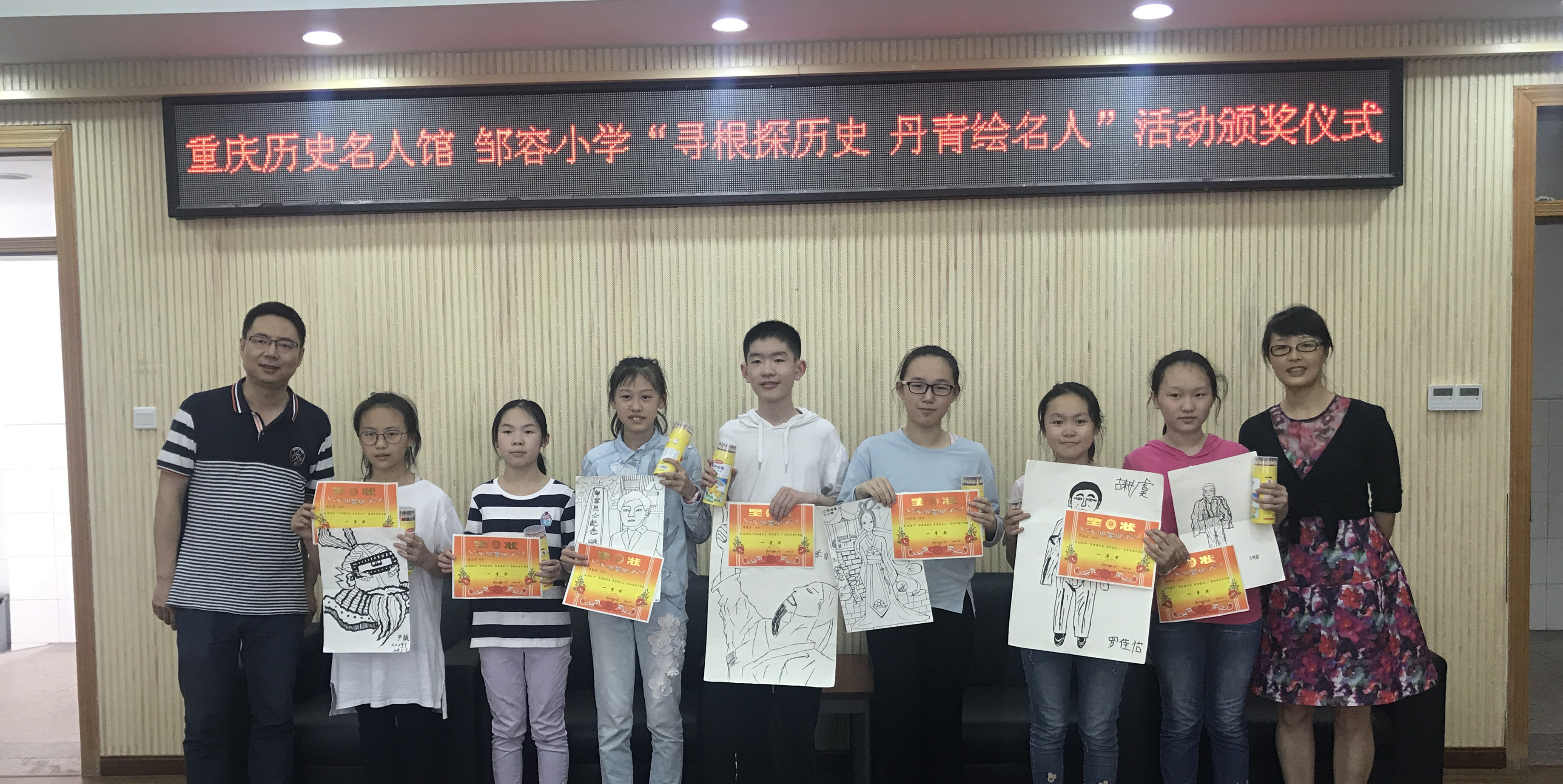 “寻根探历史 丹青绘名人”绘画活动 在邹容小学颁奖