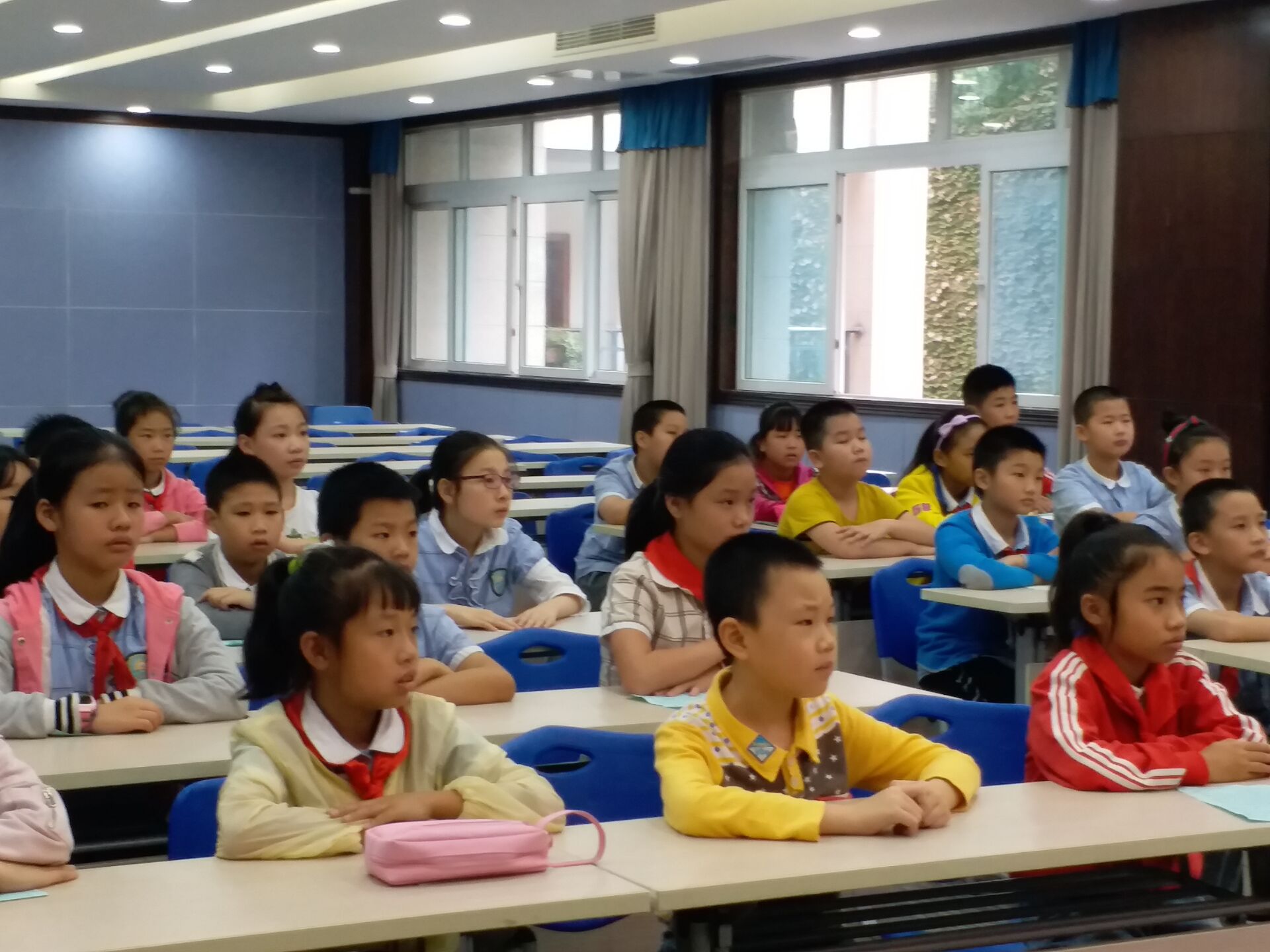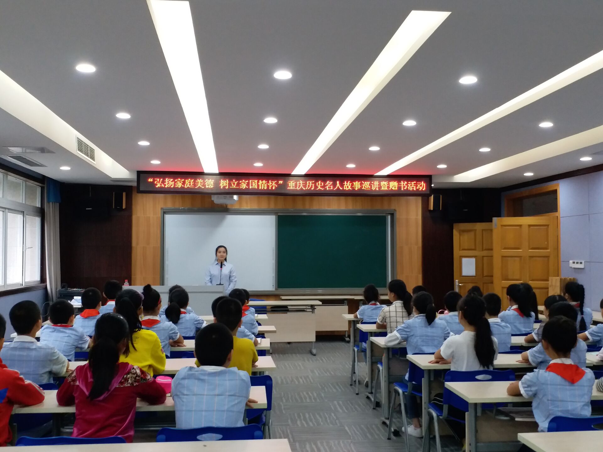 邹容小学学生在教室认真听名人故事