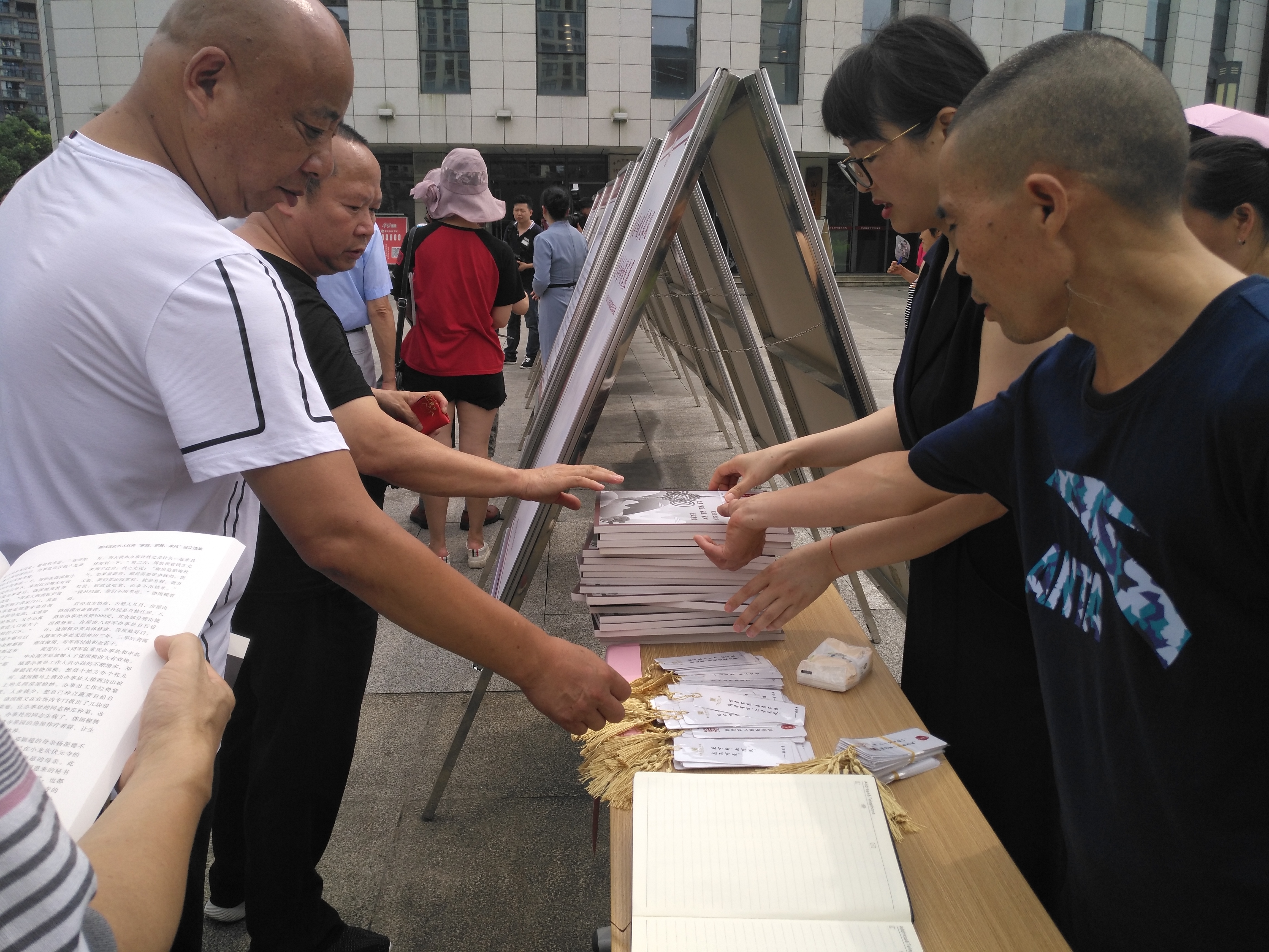 广场上,名人馆讲解员向各位领导干部和在场观众生动讲解了19位重庆历史名人的优秀家教家风故事。虽然时值盛夏,烈日如火,但现场观众不惧酷暑,都聚精会神地观看展览、聆听讲解,被历史名人的家风家训深深吸引。名人馆带到现场的特色文创产品《重庆历史名人优秀“家庭、家教、家风”征文选集》和十二生肖书签也受到观众的喜爱,活动刚开始就发放一空。