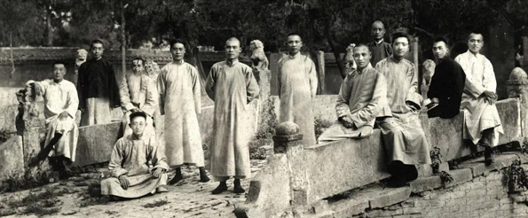 “随着在北大任教时间的推移,我日益不满于学校只是讲习一点知识技能的偏向”,1924年暑假,梁漱溟毅然辞去北京大学教席。从北大辞职的梁漱溟应王鸿一邀请赴山东筹办曲阜大学,首先接掌曹州中学,创办重华书院。图为当时随梁漱溟到山东办学诸人合影。