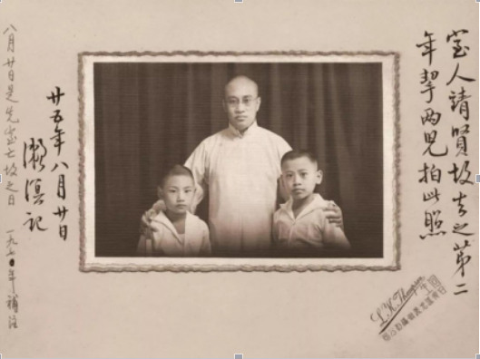 梁漱溟“以出家精神做乡村工作”。1933年梁漱溟才把夫人黄靖贤和两个未成年的儿子从北平接到条件艰苦的邹平,全身心投入工作。1935年8月,黄靖贤病逝于邹平。处理完夫人后事,因无精力照理,梁漱溟把二子送走,一家人再次过上聚少离多、四处为家的飘泊生活。图为1936年暑期梁漱溟与长子培宽(右)、次子培恕(左)留影于济南。