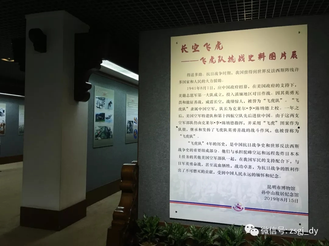 为纪念抗日战争胜利74周年,2019年8月15日,孙中山故居纪念馆与昆明市博物馆合作推出“长空飞虎——飞虎队抗战史料图片展”,在三孙中山故居纪念馆临时展厅展出,展期至2019年9月28日。