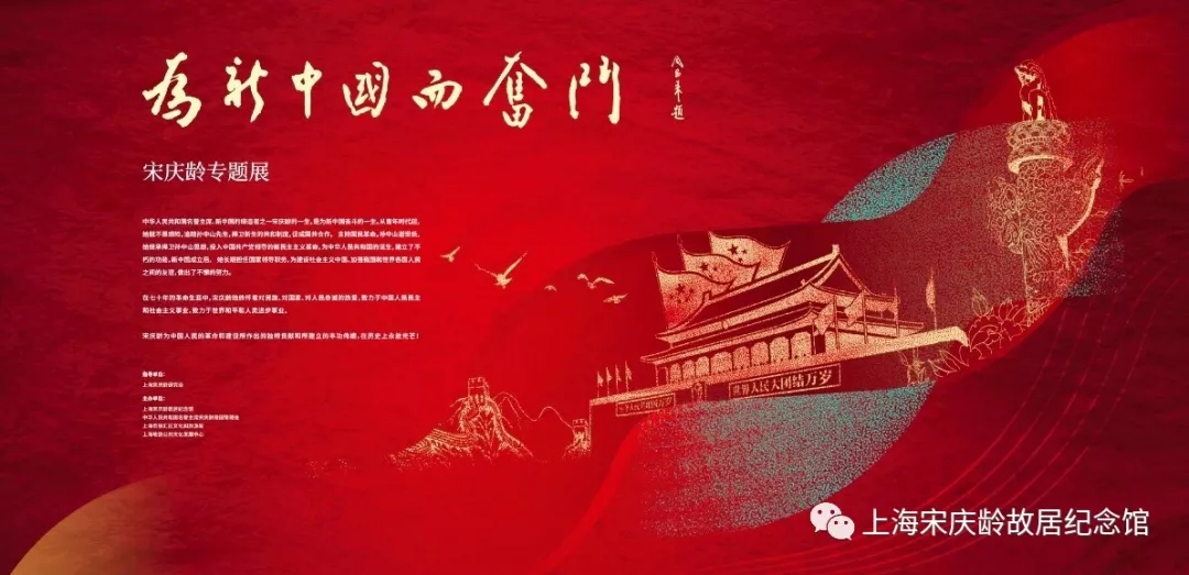 2019年,在庆祝新中国成立70周年之际,为纪念二十世纪的伟大女性、新中国缔造者之一——宋庆龄,上海宋庆龄故居纪念馆特推出《为新中国而奋斗》专题展览。展览于8月9日在上海徐家汇地铁站文化长廊正式开展。
