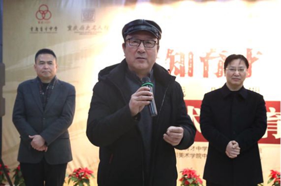 四川美术学院中国抗战美术研究中心主任凌承纬在致辞中分享了他是如何走上抗战历史研究的经历,并鼓励育才学子,不仅要记住历史,还要想向历史学习。
