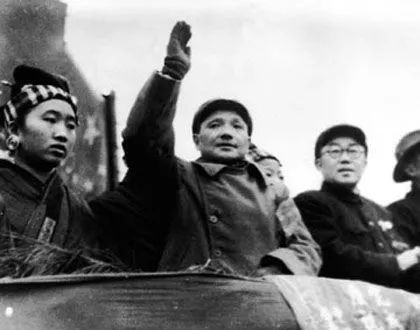 1950年第一个国庆日,刘伯承与邓小平在解放碑检阅游行队伍