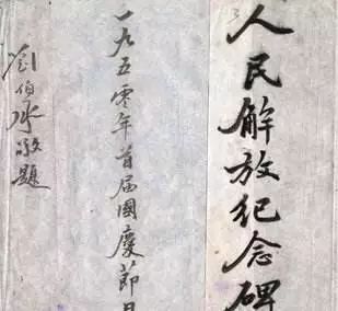 刘伯承早就想好该用什么字体来题写这么重要的碑文,只见他用蘸满墨汁的毛笔自如地挥洒在白纸上,很快,纸上就出现了几个刚劲有力的大字:“人民解放纪念碑,一九五零年首届国庆节日。”这就是人民解放纪念碑的来历,这座碑又被人们简称为解放碑。后来,“解放碑”这三个字又有了两层含义,一是指实体的石碑,一是指解放碑这个街区。从“抗战胜利纪功碑”到“人民解放纪念碑”这一段历史进程也由此被记录下来。