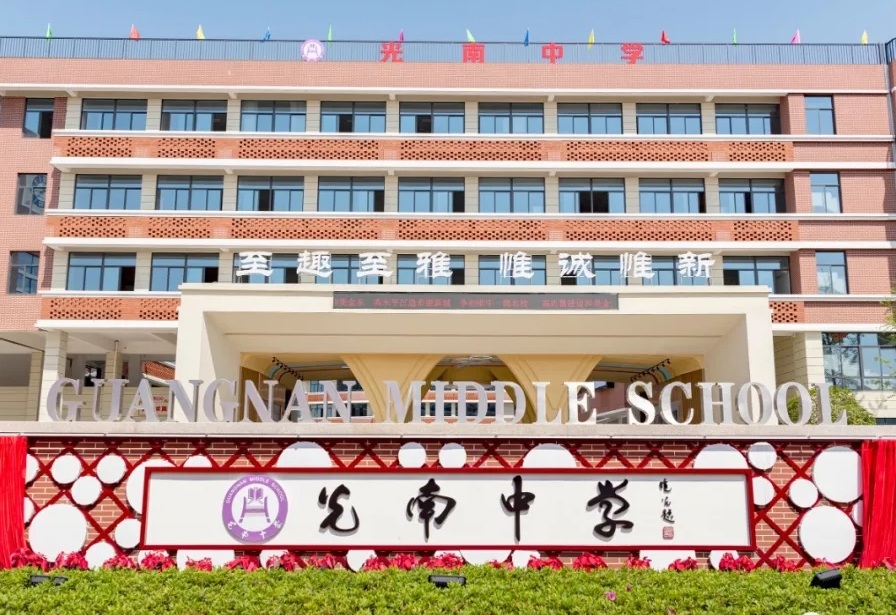 金东区光南中学,原名金东区多湖初中,2018年经施光南夫人洪如丁女士授权,正式更名为光南中学,校名由文化部原副部长、《在希望的田野上》词作者陈晓光亲笔题写。光南中学新校园位于金华市多湖中央商务区复兴街以东、丹溪路以南,占地82亩,总投资近4亿元,是金华市首批8所“未来实验学校”之一。学校建有施光南展陈馆、施光南雕塑、中学生合唱团专用教室等,真正把光南元素融入到校园文化建设的点滴之中。