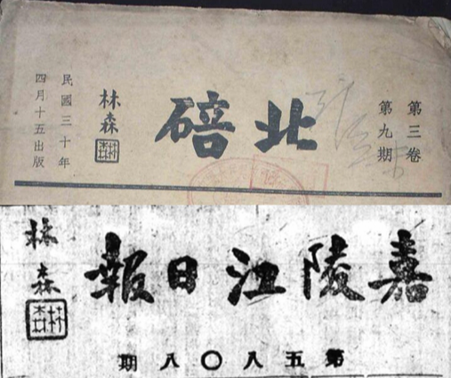 林森为《北碚》月刊、《嘉陵江日报》题写的刊头