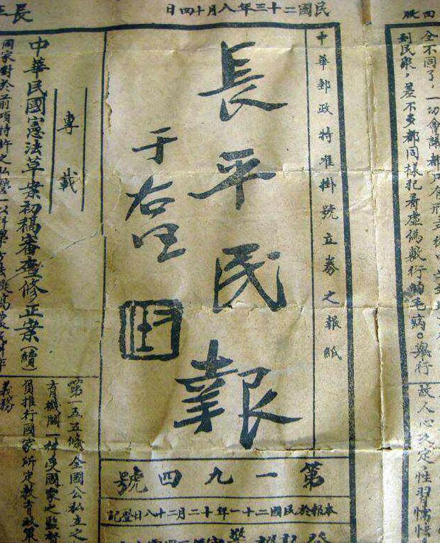 一份80余年前的《长平民报》在山西高平被发现,引起了社会各界的关注。《长平民报》的报头是由国民党元老,近代著名书法家于右任题写的,专家称这份报纸对于了解当地的历史风土人情和研究报纸发展历史具有重要参考价值。对于书法家来说,这个报头无疑让大家再次领略了书法大师于右任的书法风采。