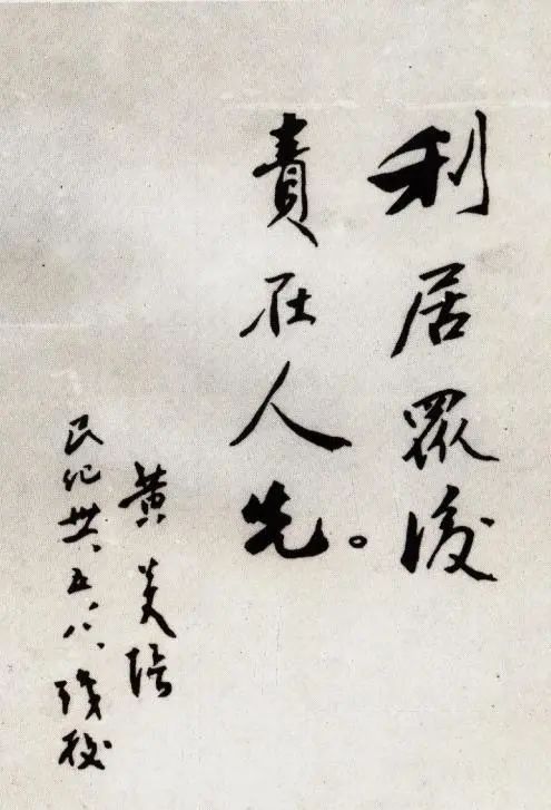 ▲黄炎培为毕业生题词:诸君前程远大,他日无论如何飞黄腾达,不要离开群众