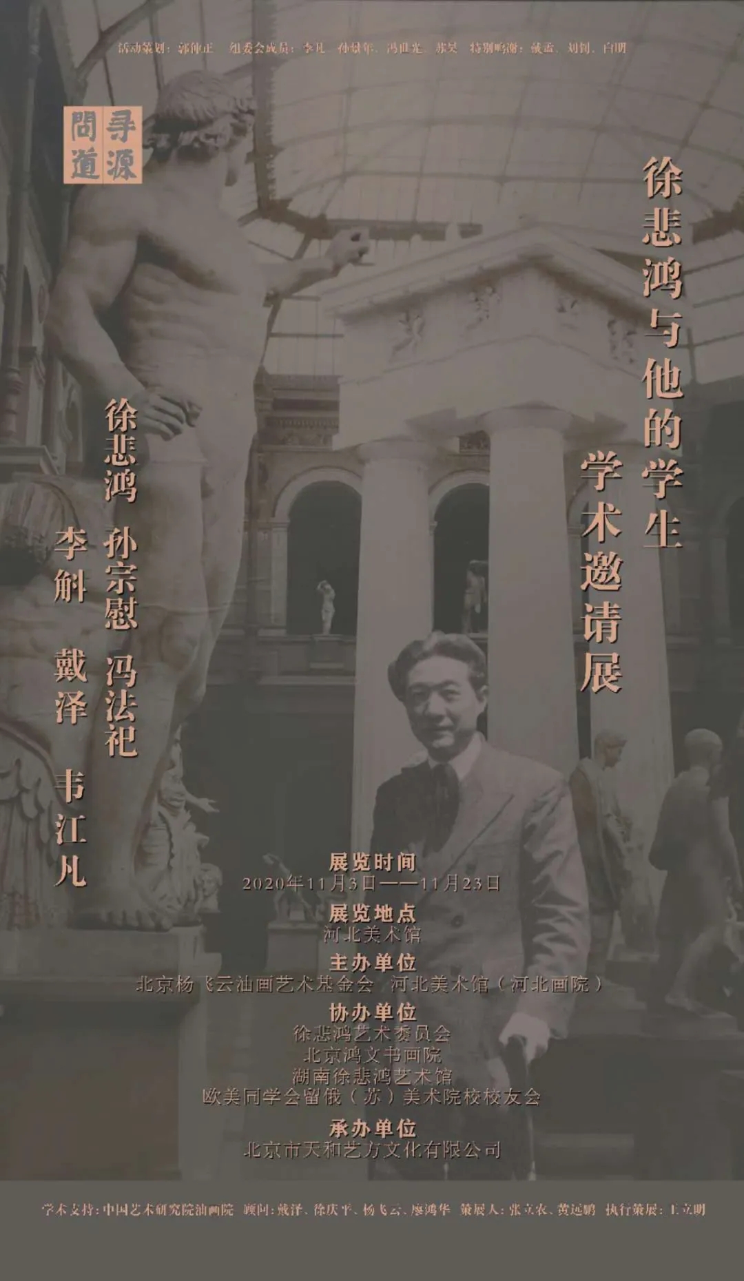 2020年11月3日上午10点,由北京杨飞云油画艺术基金会和河北美术馆(河北画院)主办的“寻源问道——徐悲鸿与他的学生学术邀请展”巡展(河北站)在河北美术馆举行。此次展览不仅是对中国近代艺术道路探索的回顾,更是对中国当代艺术发展的思考与启发。