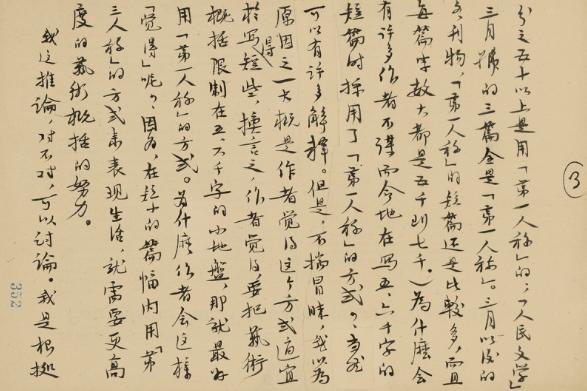 茅盾一生著述丰厚,有《子夜》《春蚕》《白杨礼赞》等一大批脍炙人口的经典作品,他的辛勤创作也留下了大量珍贵的手稿原件。这份题为《谈最近的短篇小说》的文学评论共9000余字,分布在30页纸上,每页纸张长22厘米,宽15厘米,文中所涉及的多篇作品,经由茅盾精准而有力的评论,成为中国当代文学的经典作品,比如茹志娟的《百合花》、王愿坚的《七根火柴》等。如果没有这份文学评论名篇的推介,他们很难被认定成为新中国文坛最优秀的作家,这些作品也很难成为受一代代读者喜爱的名篇。可以说,对整个中国当代文学来说,《谈最近的短篇小说》是具有重大文学历史价值的极为重要的文献。
