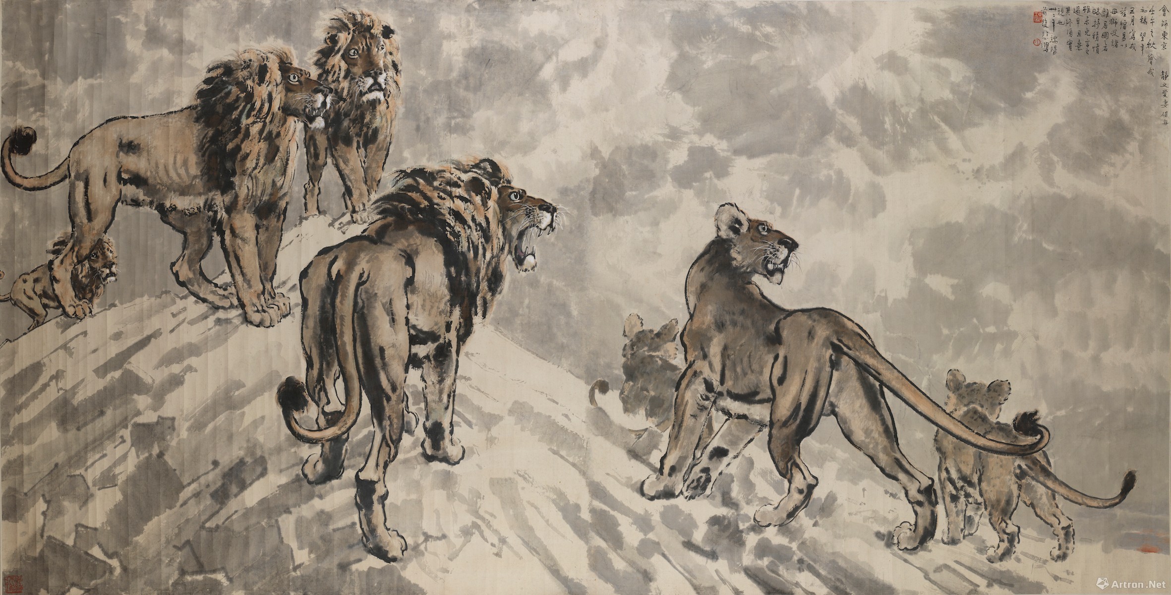 20世纪初的中国面临重重磨难,面对困难时局,徐悲鸿以满腔爱国之情,融汇中西美术技法,创作出大量极具时代特征与爱国主义情结的艺术精品,如《九方皋》《会师东京》《负伤之狮》等巨幅中国画。