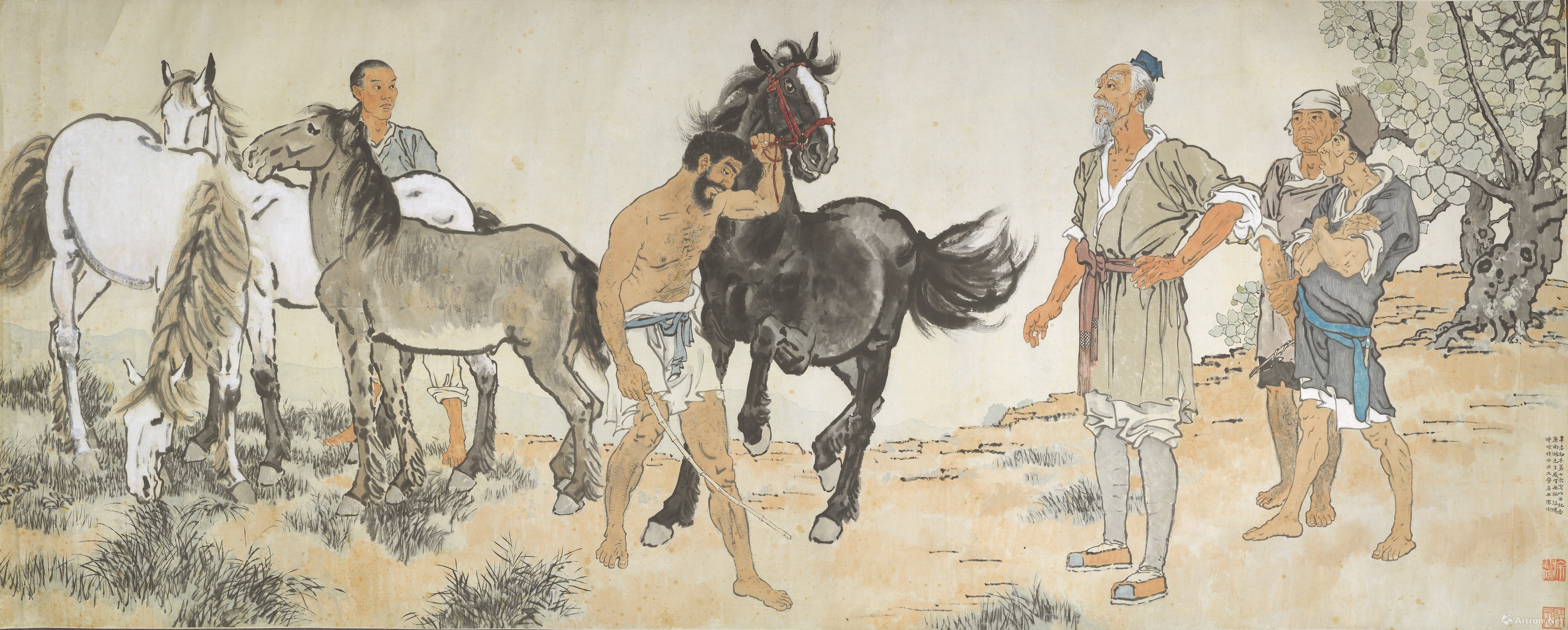 徐悲鸿从小接受到中国传统儒家经典的教育,在《悲鸿自述》中有言道,“九岁既毕四书,及《诗》《书》《易》《礼》,乃及《左氏传》。”徐悲鸿不仅继承了儒家修身、齐家、治国、平天下的思想,后来还将深刻的人文思考融入艺术创作当中。他曾塑造过许多有骨气、有气节的中华传统文化人物,还时常取材于历史或古代寓言,这些作品借古喻今,充分体现出徐悲鸿对中华传统经典的继承和发扬。