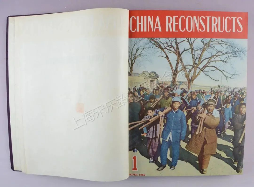 1952年《中国建设》杂志的创刊号,封面为土地改革中翻身农民的喜悦形象,封底为重建的钢铁基地鞍钢的木刻作品。创刊号上发表了宋庆龄的文章《福利事业与世界和平》以及陈翰笙、李德全、赵朴初等知名人士的文章。《中国建设》杂志出版后,又发行了多个语种,成为世界各国人民了解中国的重要窗口。宋庆龄喜爱《中国建设》杂志,经常将《中国建设》作为礼物送给国内外友人。