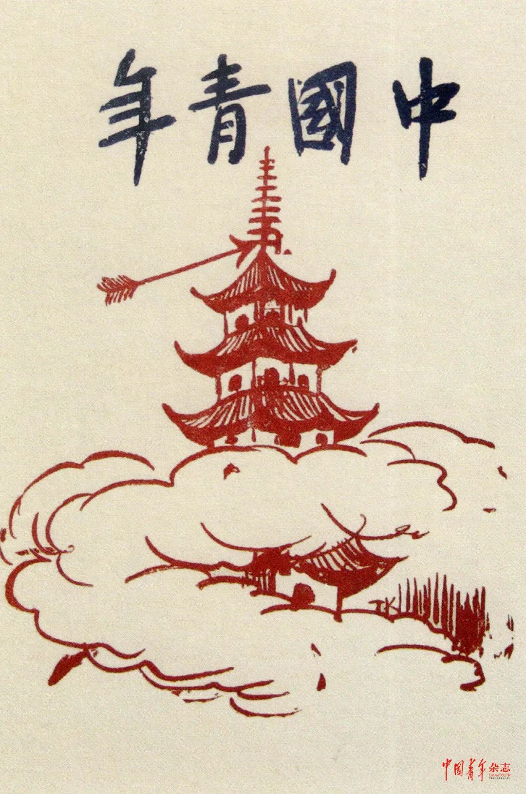 丰子恺选了这样的历史典故为画题,又用了“特写”与“夸张”的手法,画面只出现射在塔刹的箭,给人以强力的视觉冲击。而《中国青年》就特意用了这幅画作封面,用意是很明确的。